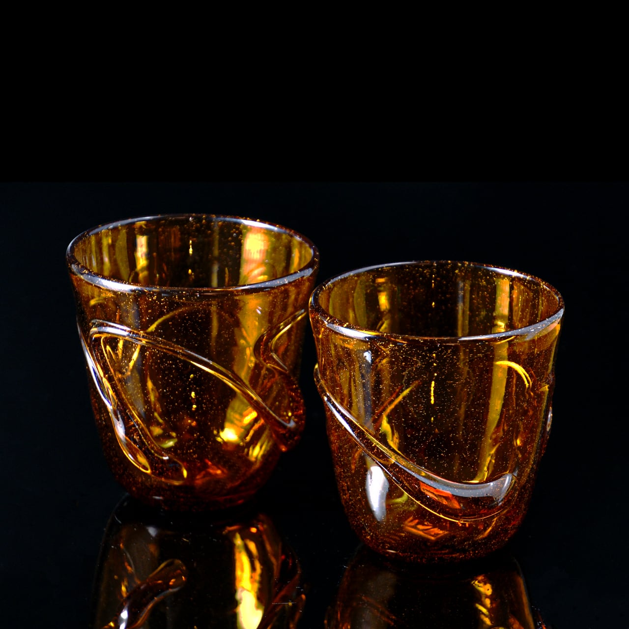 【琉球ガラス】琥珀グラス2個セット ペアグラス